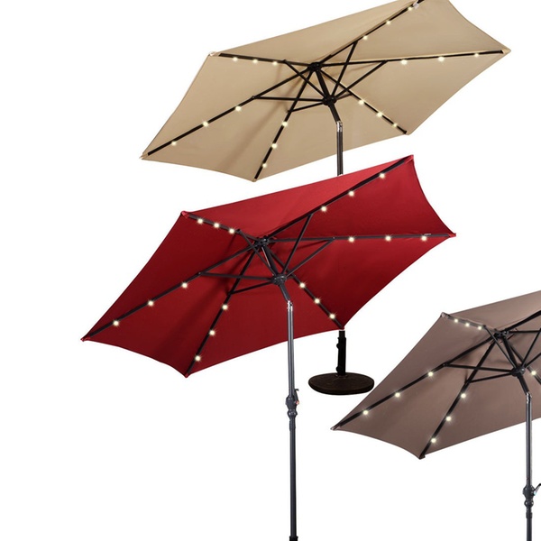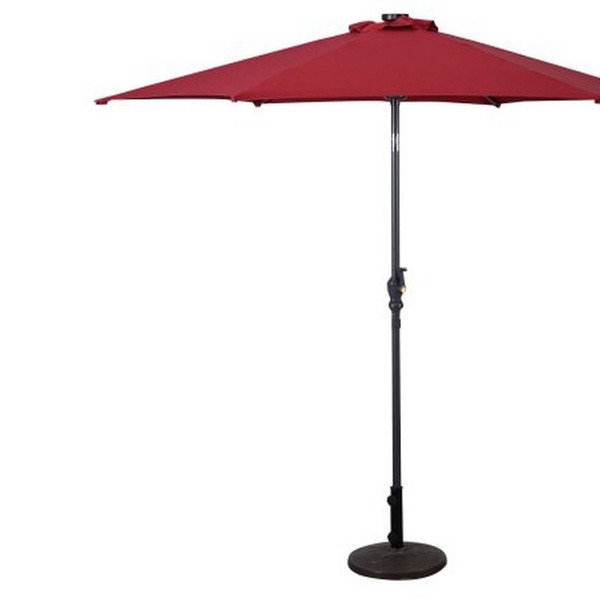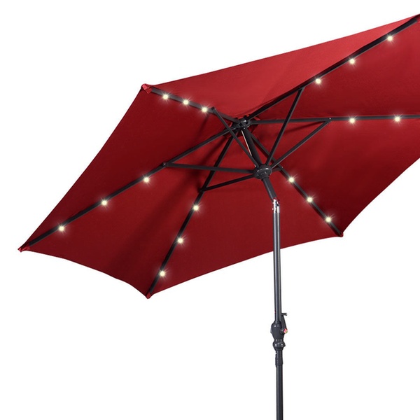 9ft. Patio Umbrella Solar LED Lights Steel Tilt with Crank Burgundy