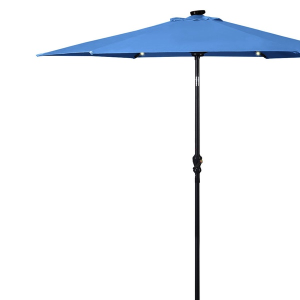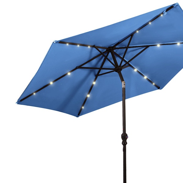 9ft. Patio Umbrella Solar LED Lights Steel Tilt with Crank Blue