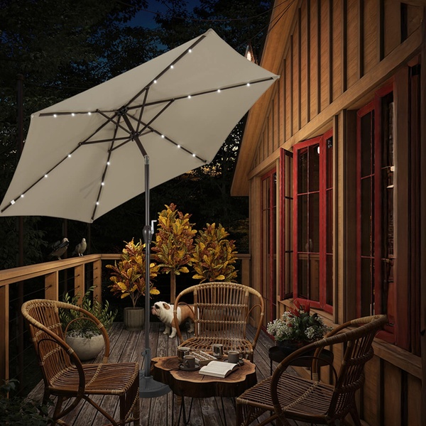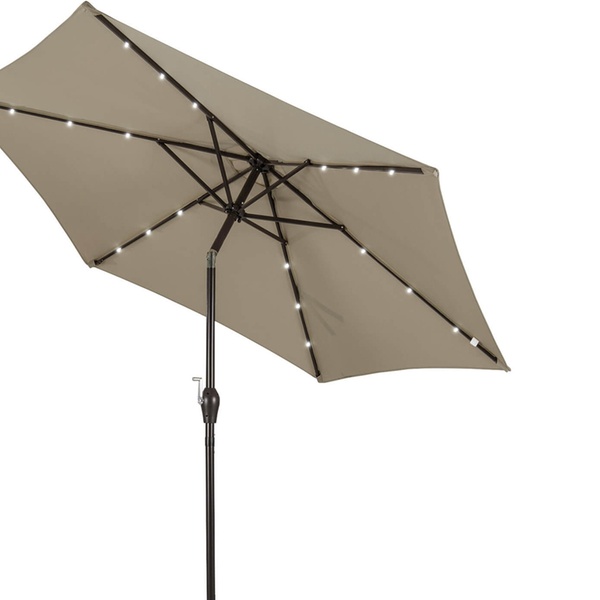 9ft. Patio Umbrella Solar LED Lights Steel Tilt with Crank Beige