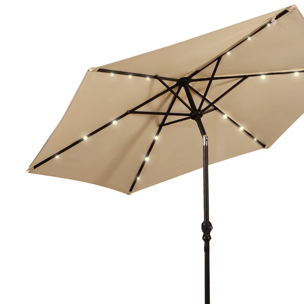 9ft. Patio Umbrella Solar LED Lights Steel Tilt with Crank Tan