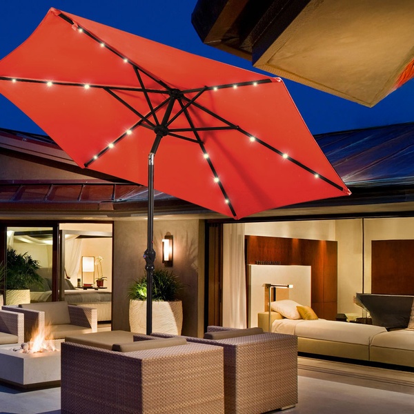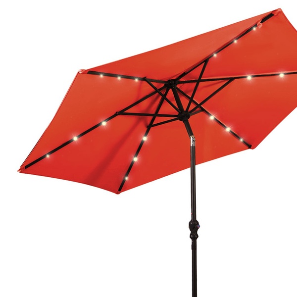 9ft. Patio Umbrella Solar LED Lights Steel Tilt with Crank Orange