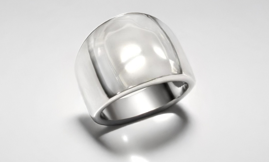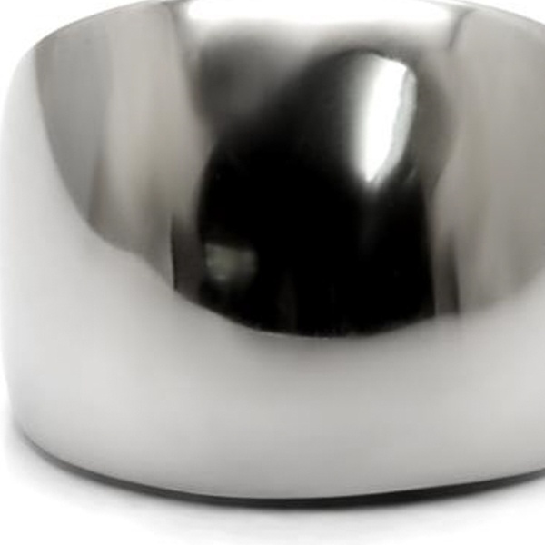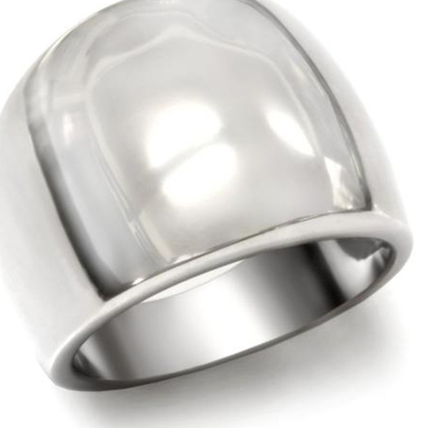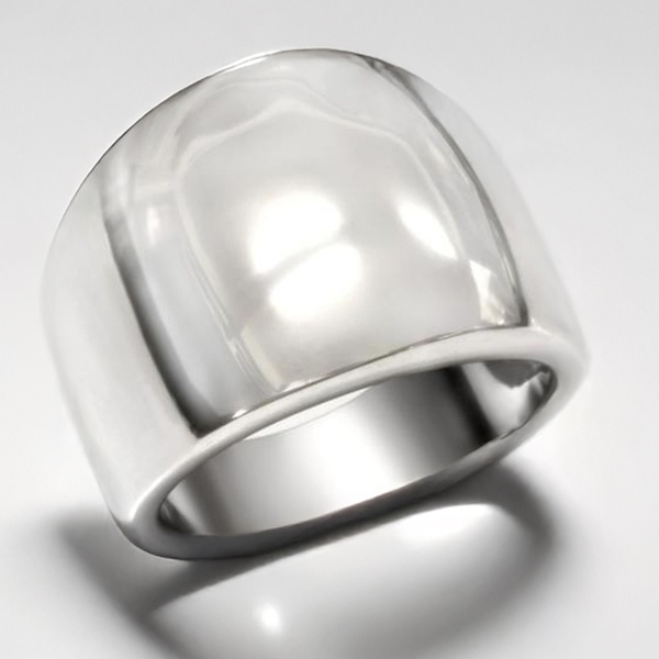 This stylish solid stainless steel 316 fashion ring is perfect gift for a friend or a loved one! Made of solid stainless steel and a high polished finish (no plating). This ring features a classic tappered band that is 17mm wide at its widest point and 5mm wide at least widest point. Stainless Steel jewelry is durable and will not tarnish or oxidize over time.