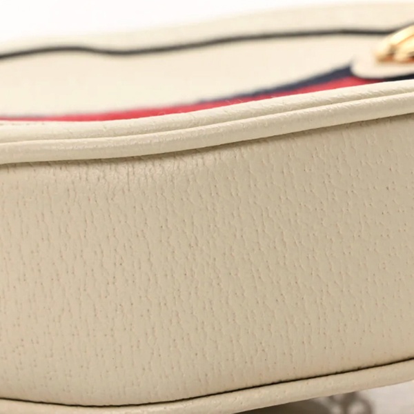 The pristine white grainy leather is beautifully contrasted by the instantly recognizable blue and red Web stripe—a symbol of Gucci since the 1950s.