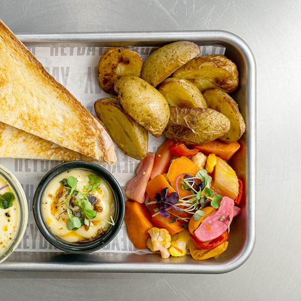 $25 Credit Toward Any Breakfast Or Signature Drinks For Two: Share a delicious breakfast with a friend. Each gets a customizable plate with proteins, veggies, and toppings. Valid for two guests, dine-in only.