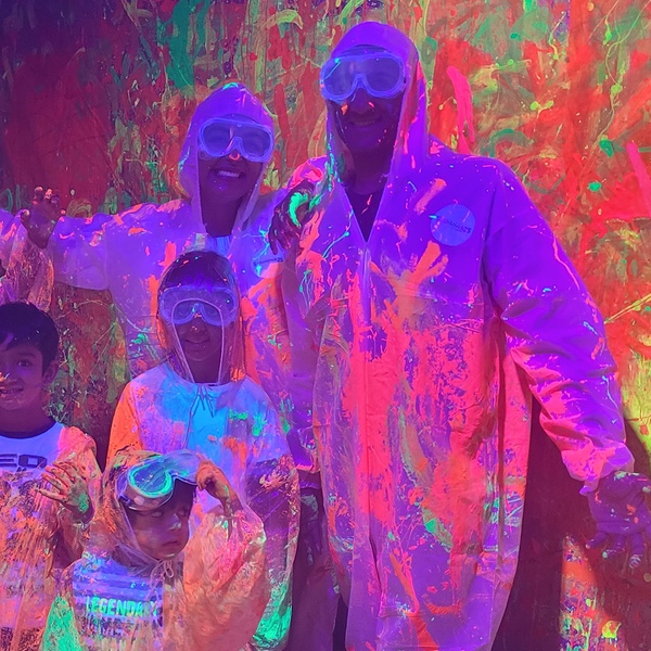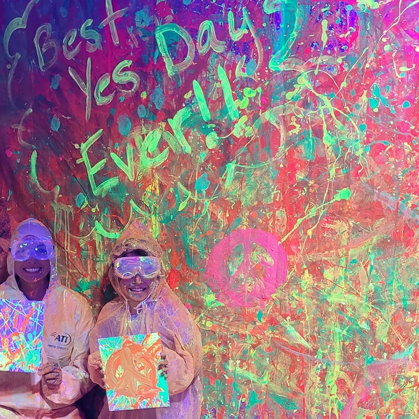 Step into a glow-in-the-dark paint zone and unleash your creativity in a private, interactive splatter session for all ages.
