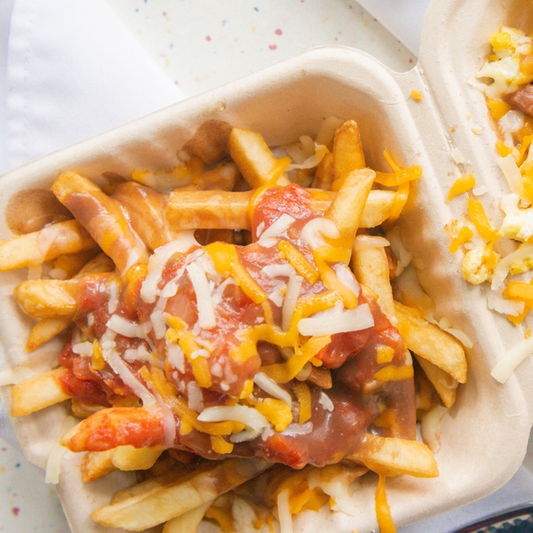 - One side per person; choice of half-fry, half poutine, onion rings, deep fried pickles or corn fritters