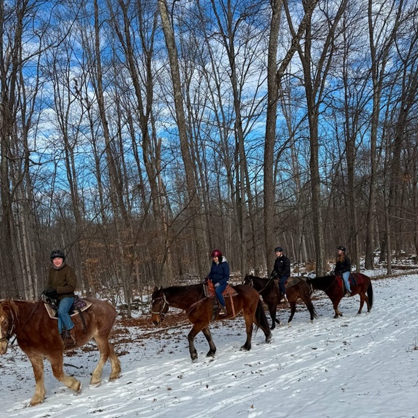 Enjoy a 45-minute guided horseback trail ride at Juckas Stables through the scenic Hudson Valley. Explore 117 acres of fields, woods, and ponds with friendly wranglers and gentle horses—perfect as a gift and great in any season, winter, spring, summer, or fall.