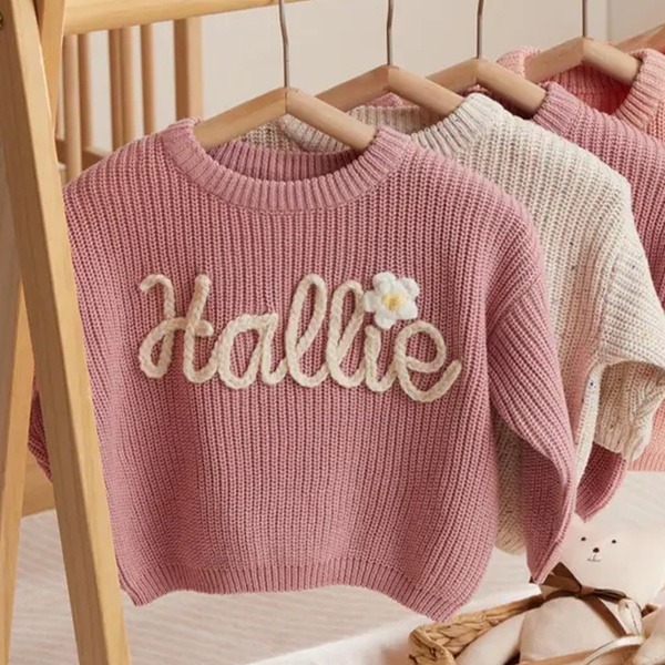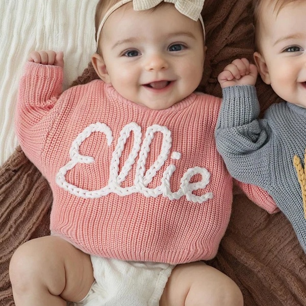 Wrap your little one in love with one or two personalized embroidery baby sweaters. A custom way to celebrate their name or a special design