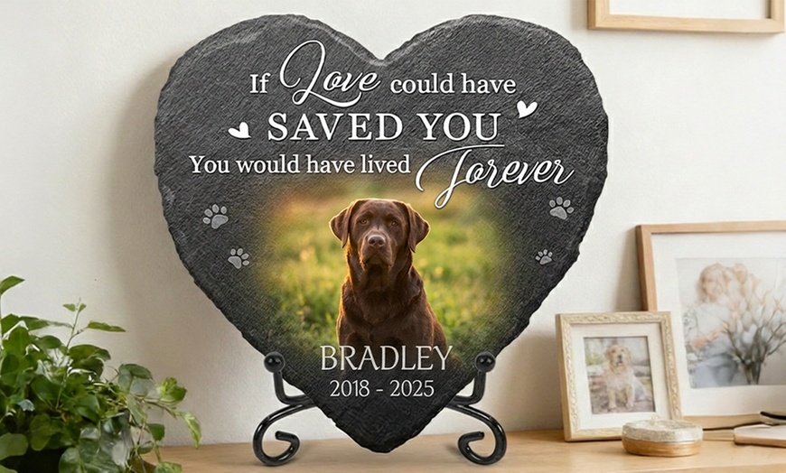 You can customize the stone with your pet's name, memorial dates, a sentimental quote, and paw print designs. You can also choose from various shapes (heart, square, paw print) and sizes