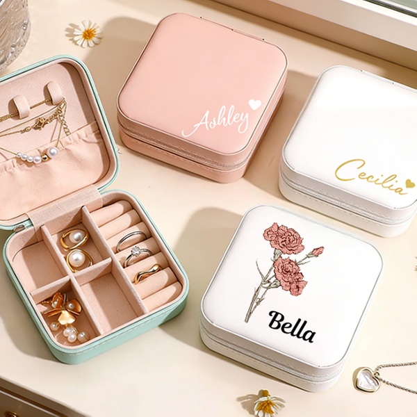 The compact and portable design (approximately 5.3” L × 4.5” W × 2” H) makes it ideal for travel, ensuring your jewelry stays safe and organized on the go