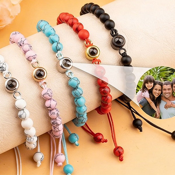 Create a truly unique, personalized keepsake with a custom photo projection bracelet from Justyling. Your cherished photo is nano-engraved inside a tiny central bead, which can be viewed by looking closely or projected onto a surface using your phone's flashlight.