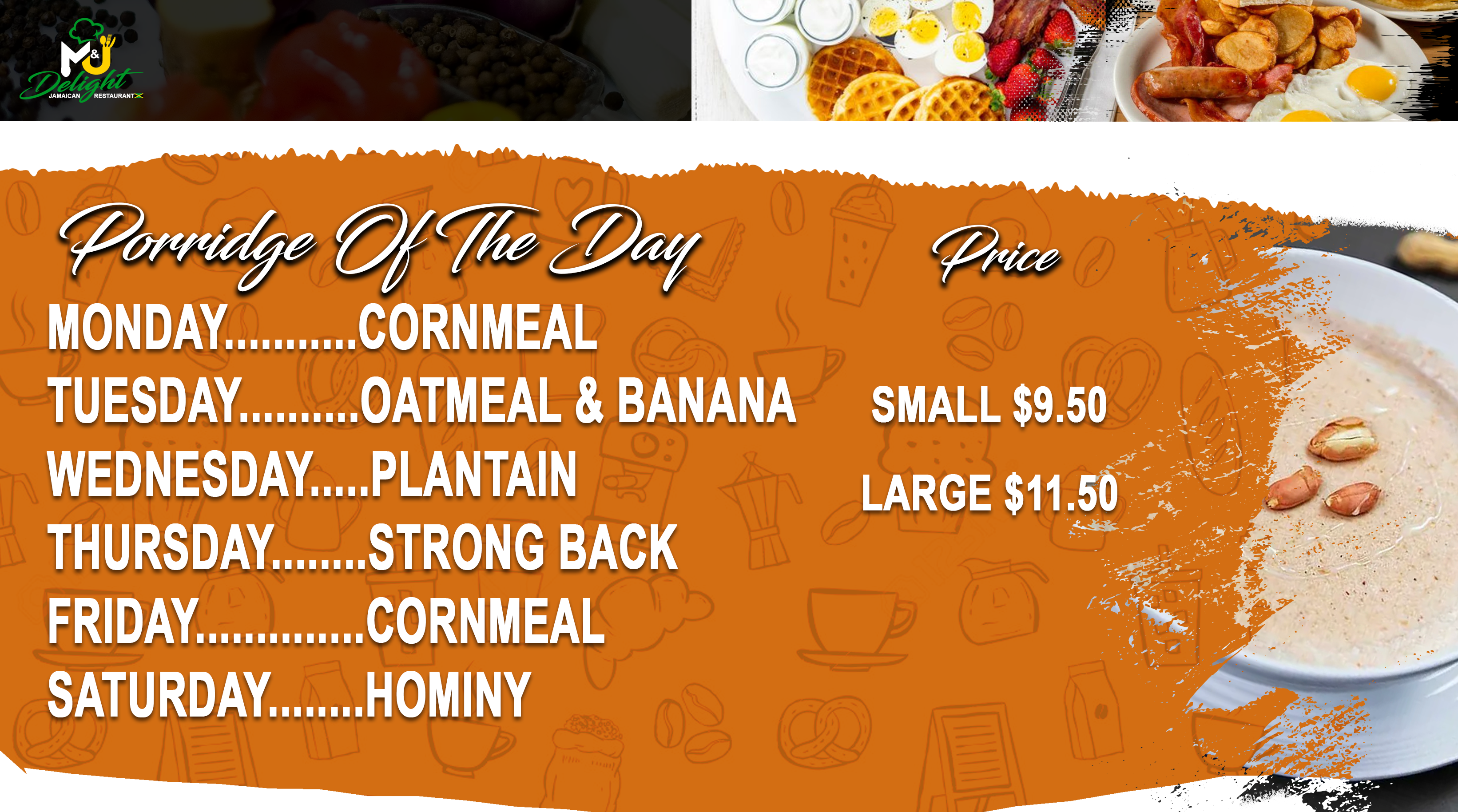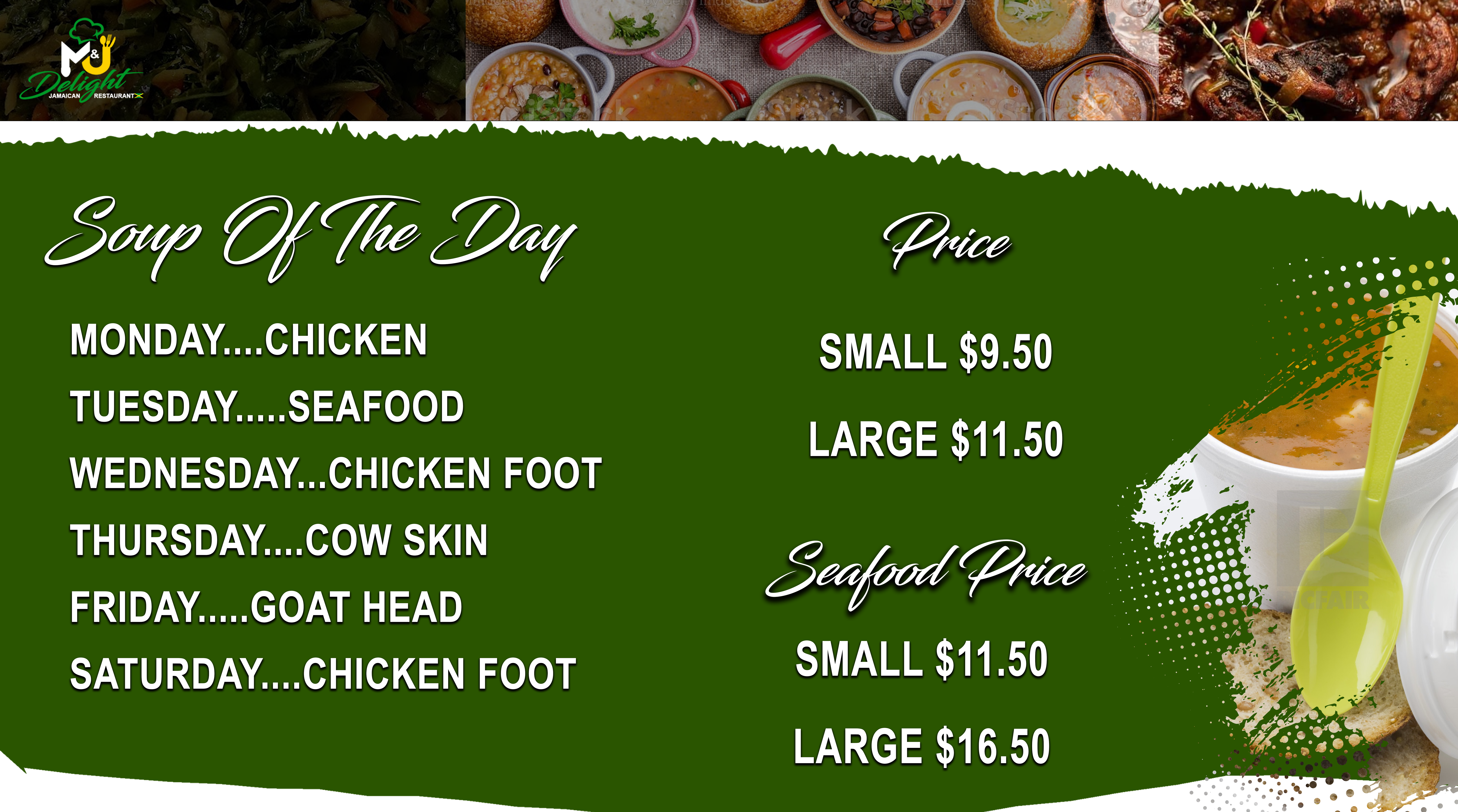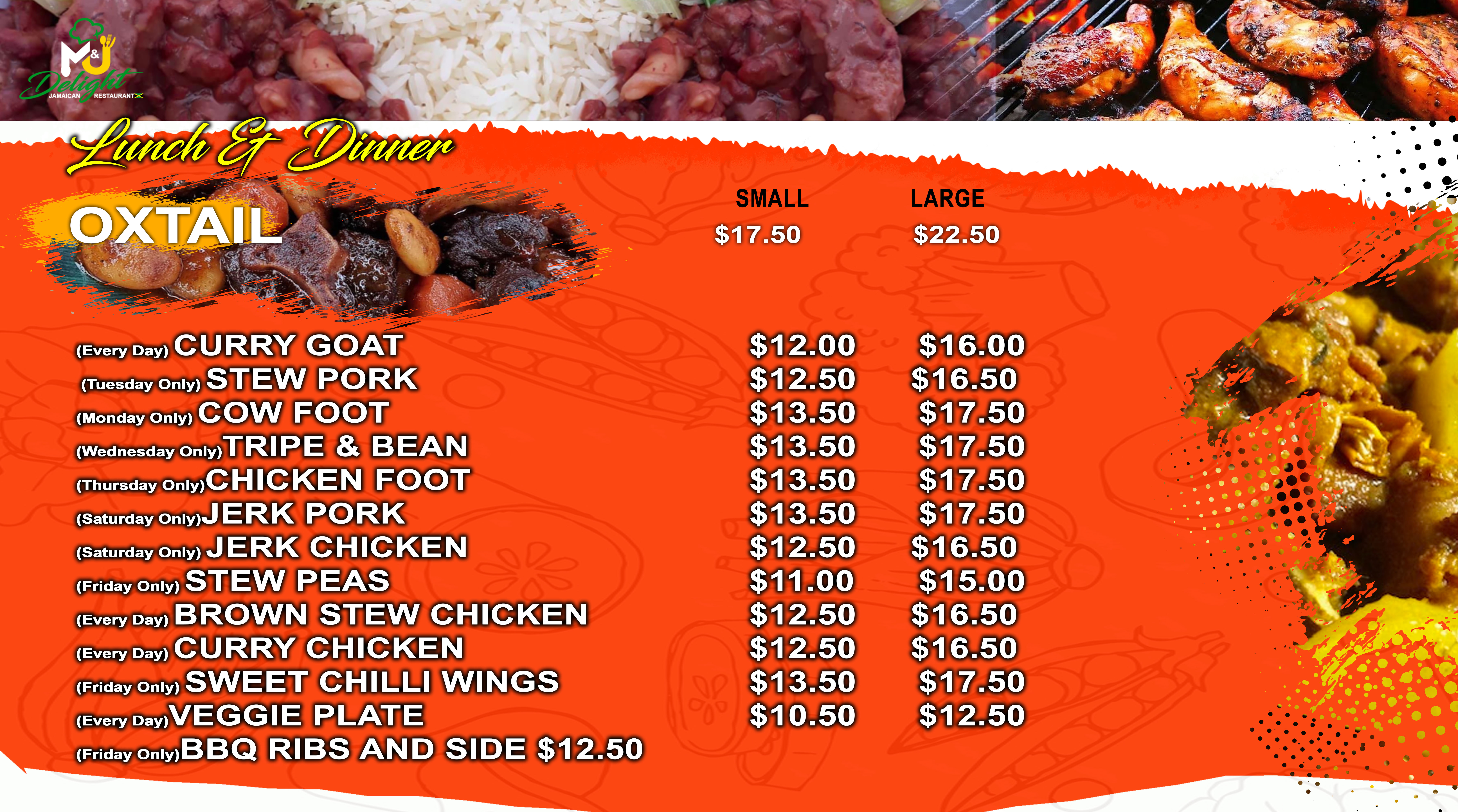 Clients can enjoy a wide range of Jamaican cuisine, such as oxtail, stew or soup; available for breakfast, lunch or dinner