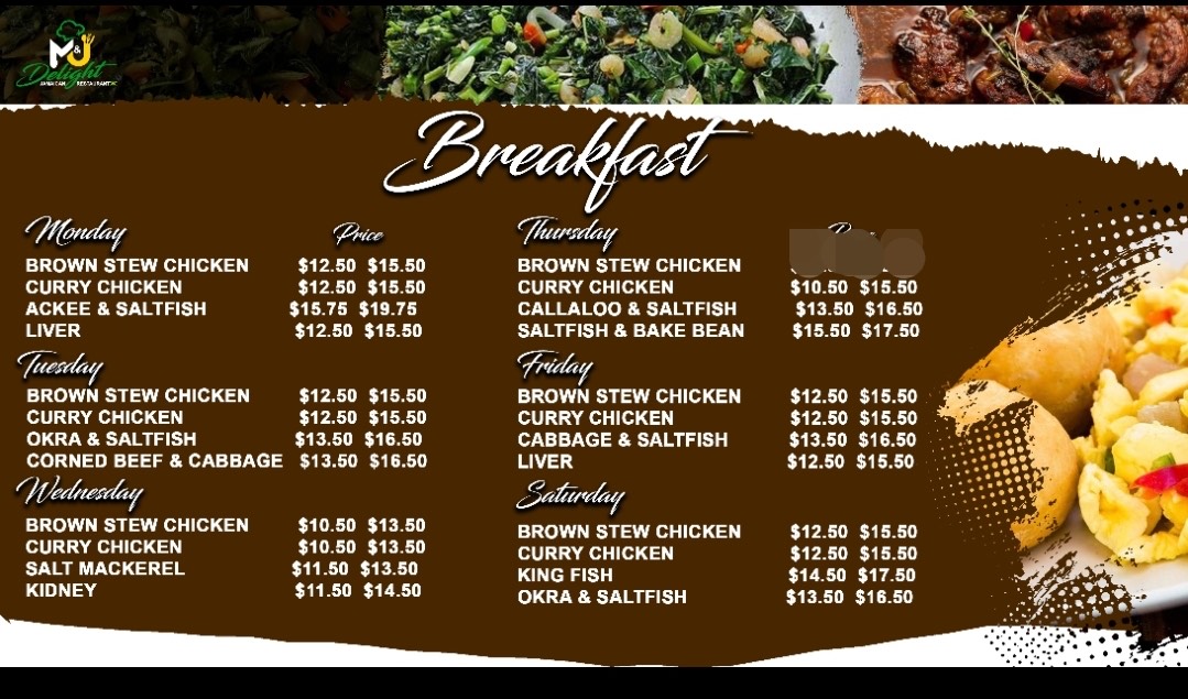 M & J Delight offers genuine Jamaican cuisine for the local community and travelers. Skilled chefs know how to conquer the palates of their guests and satisfy their taste buds. After all, at M And J Delight they know how to make them feel alive with the sensations of Jamaican delight.
