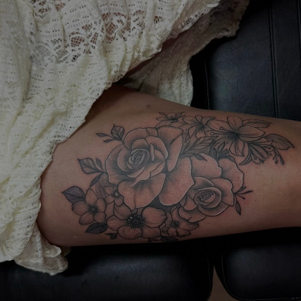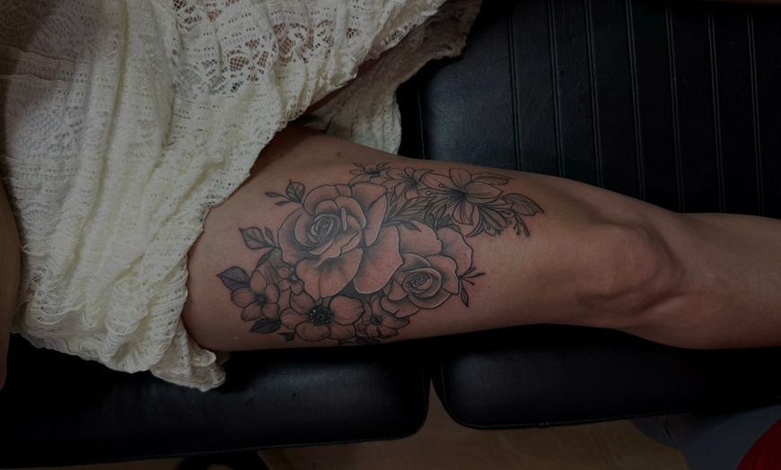 Custom Medium Tattoo: Got an idea in mind? Lets hop on a quick call and bring it to life together. Ill take your vision, blend it with my artistic style, and design a custom 4x4" black and gray tattoo just for you.