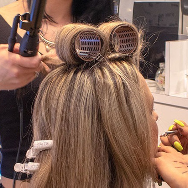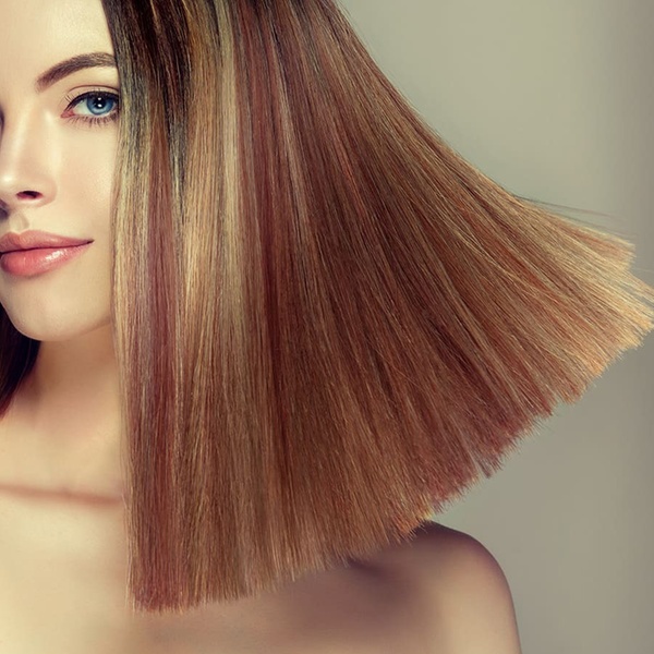 Add a shine-boosting hair glaze to smooth frizz and enhance vibrancy, then finish with a glossy blowout for that “just left the salon” look.