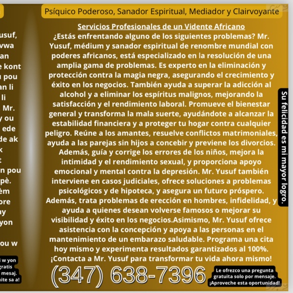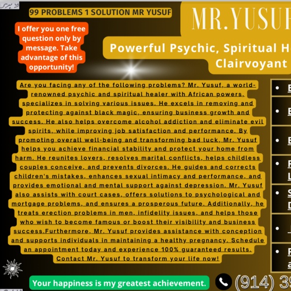 Mr. Yusuf's journey to becoming a well-known psychic healer in the thriving metropolis of New York has been nothing short of extraordinary. His incredible experiences and deep insight have captured the hearts and minds of many people looking for comfort, direction, and healing. Mr. Yusuf, who was born with natural intuitive ability, became aware of his unusual talents at a young age. He started a lifelong journey to better comprehend the human spirit and use his psychic abilities for the benefit of others after becoming drawn to the mystical and spiritual worlds. Mr. Yusuf developed his skills through years of committed practise and unshakable dedication, gaining a profound understanding of esoteric knowledge, energy healing methods, and spiritual practises from all around the world. For individuals looking for solutions and healing, his strong connection to the unseen realms and his capacity to access universal awareness have made him a beacon of light.