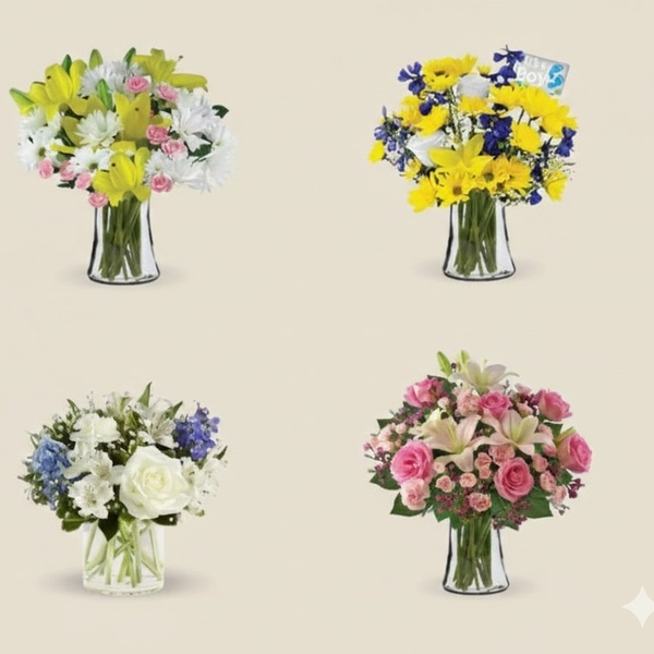 Imagine the joy lighting up a loved one's face as they receive a stunning arrangement of flowers, each bloom whispering tales of love, admiration and appreciation. With this service, you're not just sending flowers; you're orchestrating moments of delight and weaving memories that last a lifetime. Handpicked, handcrafted, and hand-delivered with utmost care, these New Baby floral arrangements transcend mere gifts—they become cherished experiences. Choose from 6 radiating bouquets of gorgeous fresh flower arrangements to suit any taste or budget.