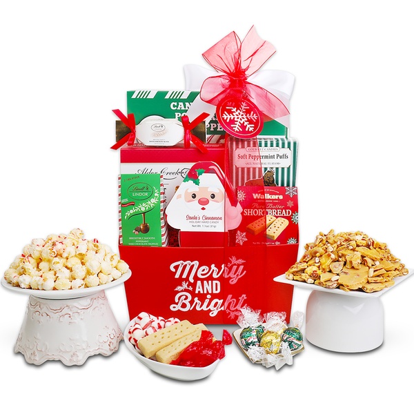 This Alder Creek Gift Baskets Merry & Bright Gift has a little bit of everything, for a little bit of everyone to enjoy. From festive candy to classics like peanut brittle, there is something for everyone to appreciate when they gather around the tree this year. With pure merriment in each bite, this gourmet gift is sure to be a crowd pleaser and is perfect for anyone one on your shopping list this holiday season.