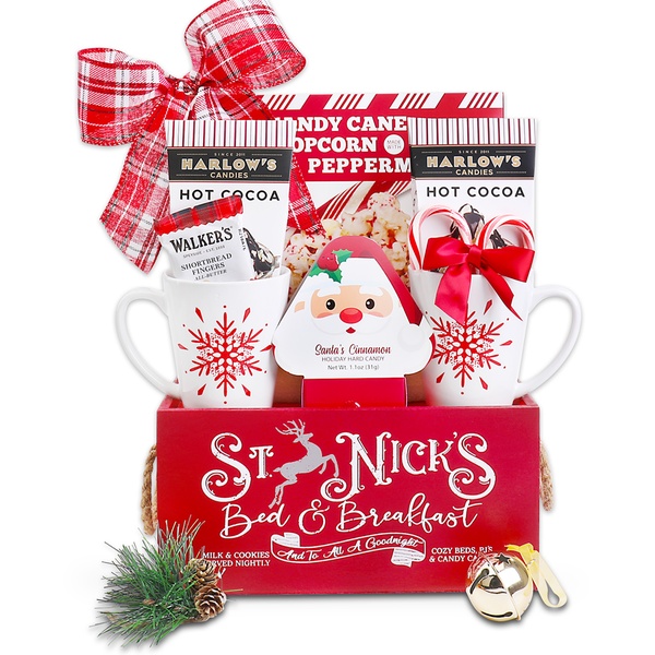 Embrace the warmth of the holidays and nurture the spirit of giving with the Alder Creek St. Nick’s B&B Gift Basket. This festive collection is beautifully presented in a reusable red St. Nick’s crate and brimming with classic holiday treats.