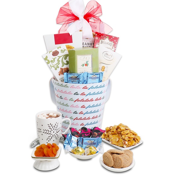 Deck the halls and fall-la-la-la in love with this lovely Alder Creek Gift Basket Fa-La-La Gift Pail. Perfect for anyone on your list near or far. This gift contains an exciting assortment of festive holiday treats that they are sure to love as they enjoy all that this winter holiday season has to offer.