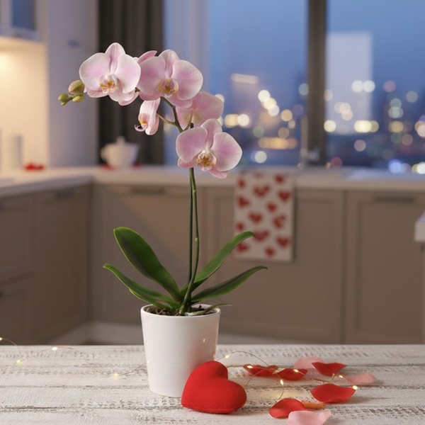 Capture the essence of grace and everlasting affection this Valentine's Day with the Light Pink Phalaenopsis Orchid. Often called the "Moth Orchid," these delicate blooms serve as a living symbol of joy and happiness, making them a more enduring alternative to a traditional cut bouquet. This 3-inch potted treasure is perfectly sized to bring a touch of sophisticated romance to a desk, windowsill, or bedside table. Whether you are looking for a stunning living gift or a refined accent for your own space, this orchid offers premium elegance in a perfectly compact size with the convenience of Free Shipping included.