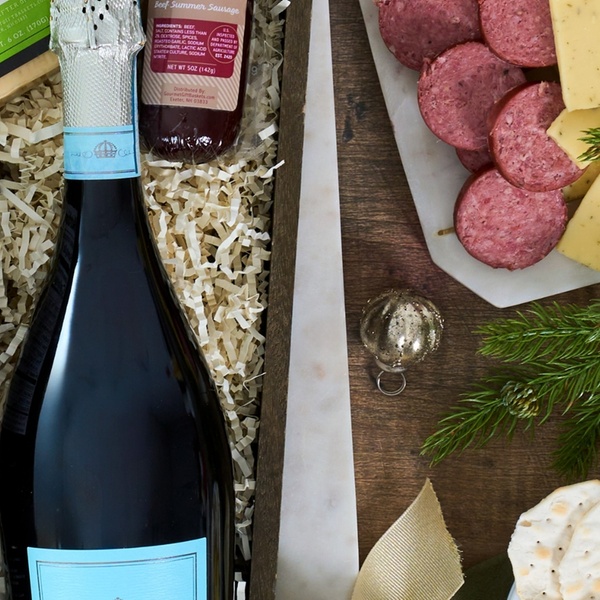Make any occasion memorable with this delightful gift! Inside a keepsake crate, the recipient will find a crisp and clean La Marca sparkling wine that delights with delicate effervescence. The bubbly is paired with classic gourmet snacks, including premium cheese, hearty hors d'oeuvre crackers, and a tasty sausage. This stunning arrangement is guaranteed to impress.