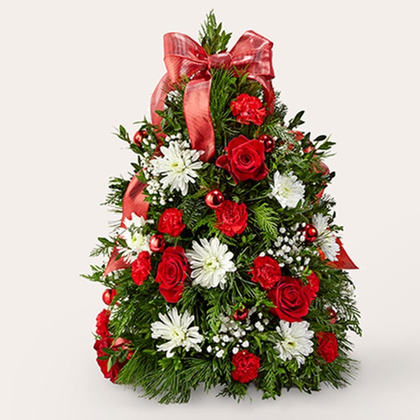 • Make It Merry Tree: The mini tree of your dreams, combining the glorious scents of holiday greens with blooms like roses, poms, and mini carnations. Includes a radiant mix of Roses, Carnations, and Christmas Greens.