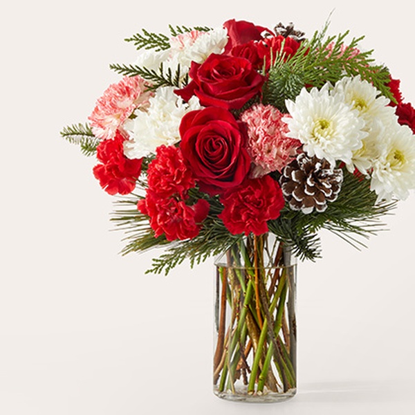 • Candy Cane Lane Bouquet: Awaken your senses this winter with a chilly mix of red, white and peppermint swirled stems featuring standout stems like Carnations, Roses, and Christmas Greens.