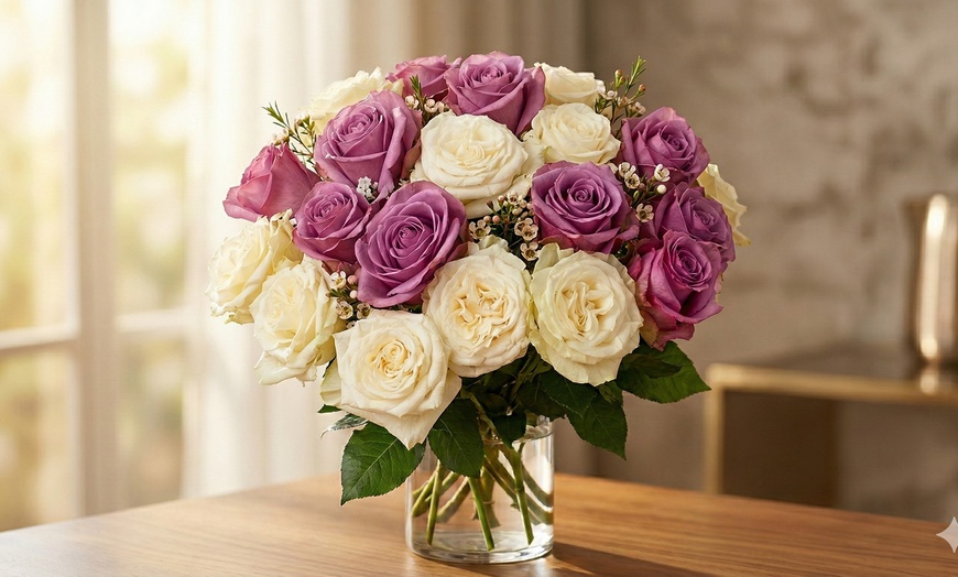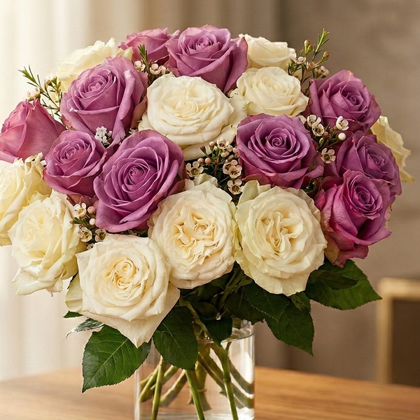 • Includes 12 Lovely Cream roses & 12 Beautiful Lavender roses