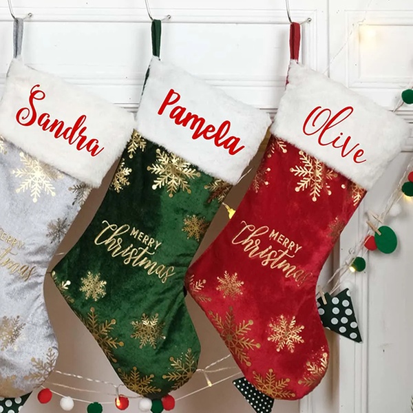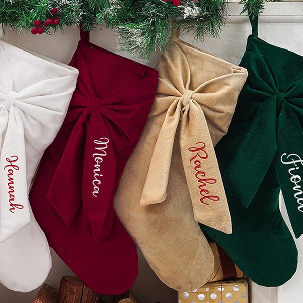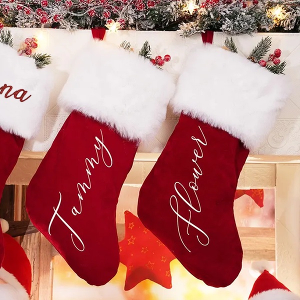Each stocking is crafted from high-quality knit fabric and velveteen, designed to be soft, durable, and comfortable to the touch.