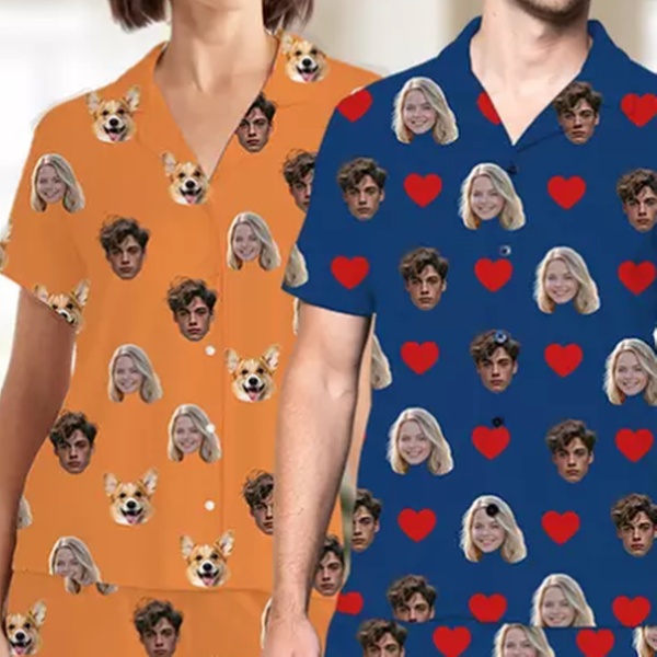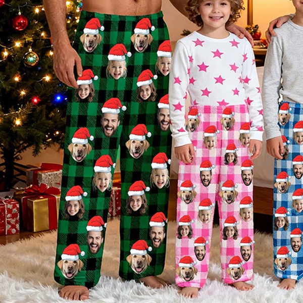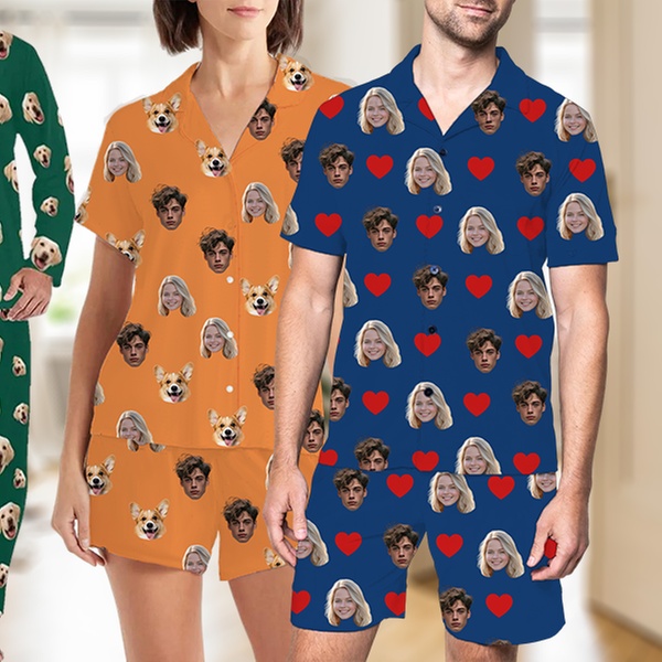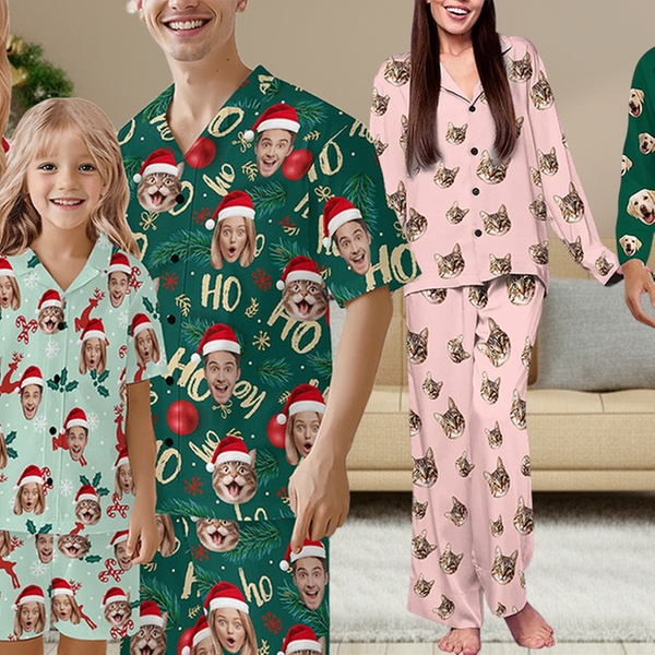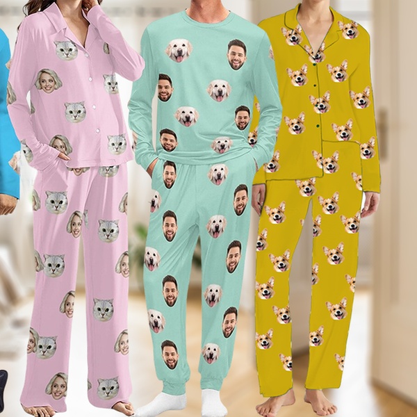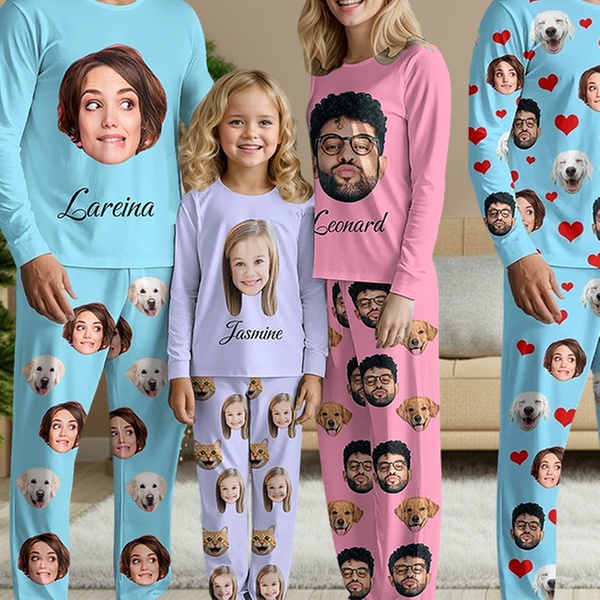 Get a complete set of personalized pajamas, including both the top and the pants, featuring your chosen photos or designs.