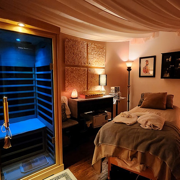 • SERENITY ESCAPE Wellness- Option #2- Infrared Himalayan Salt Sauna/ Therapeutic Body Massage, Hot stones/ Snacks, and Beverage: All is included as in Option #1- except this Option #2 -The Body Massage is a longer 60 minute session. The Anti-oxidant Facial is NOT included in this package.