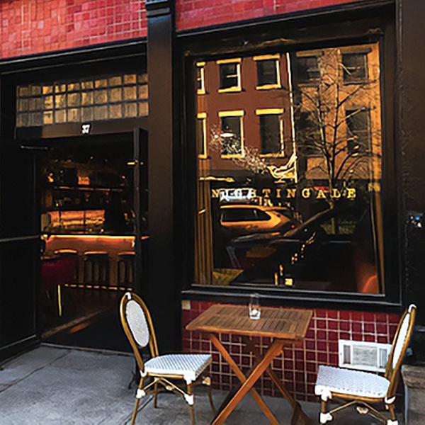 Nightingale is a West Village gem with a swanky vibe reminiscent of the roaring 1920s. Designed for your sense of sight and touch, with a menu to hypnotize your sense of taste and scent, and a background-music selection that will teleports you out of your everyday. The atmosphere is rich in colors and textures. From Persian rugs, to velvet curtains, upholstered seating, ambient lighting, the attention to detail is impeccable. And to top it all off, the selection of wines, champagnes, artisanal cocktails, and the small-plates menu will leave you wanting more every time."