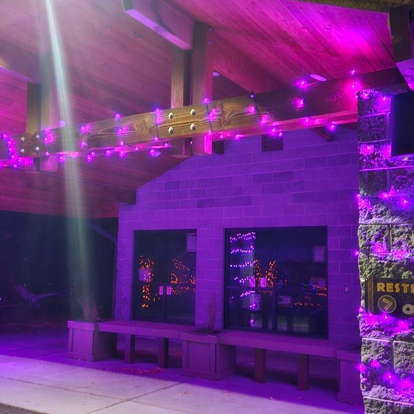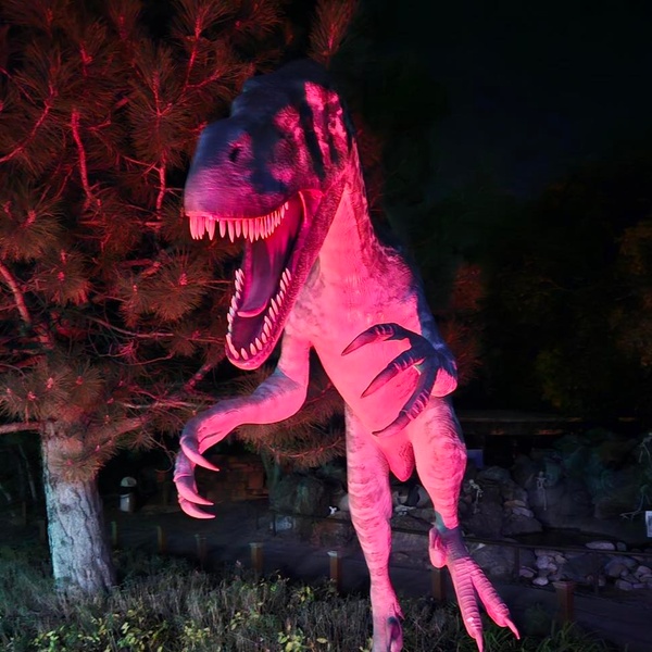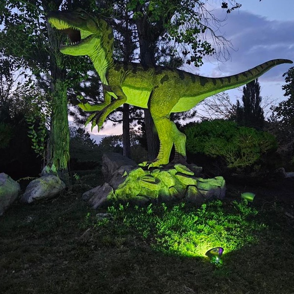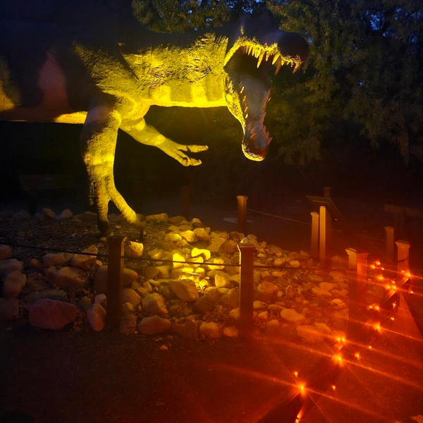 Explore an 8.5-acre park filled with over 100 life-size dinosaur sculptures illuminated in the dark