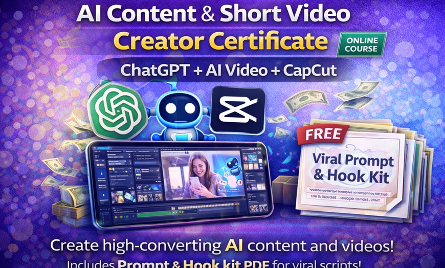This comprehensive online course empowers beginners and creators to master AI tools like ChatGPT and CapCut, enabling them to produce high-converting, scroll-stopping short videos for TikTok, Reels, and YouTube Shorts efficiently and without filming experience.