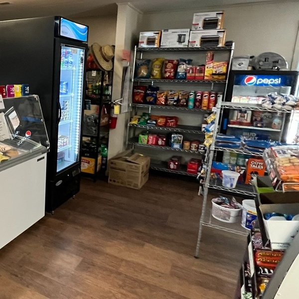 - A campstore stocked with snacks, drinks, apparel, bait and tackle