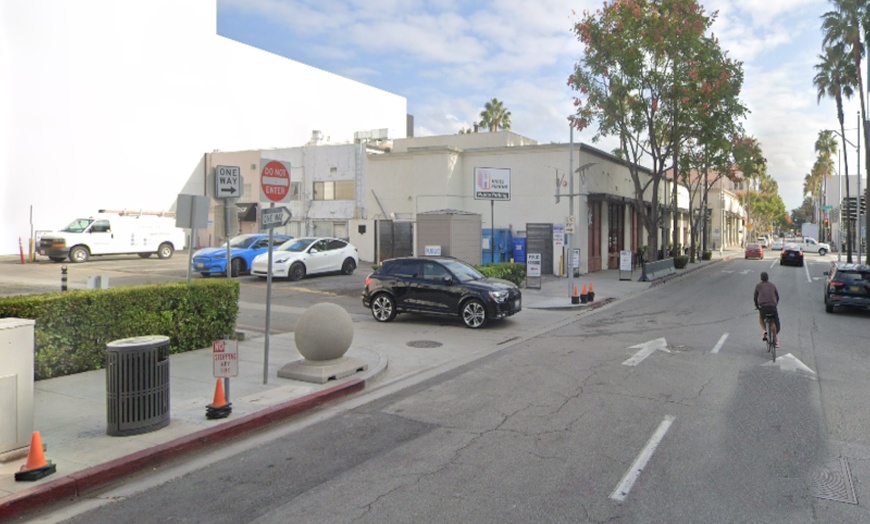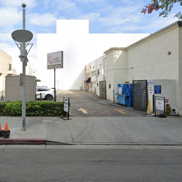 This open-air lot is located in Beverly Hills! The entrance to the paved lot will be identified by a post at the entrance that says "Public Parking". The lot will be located in the alley behind Rolex Boutique.