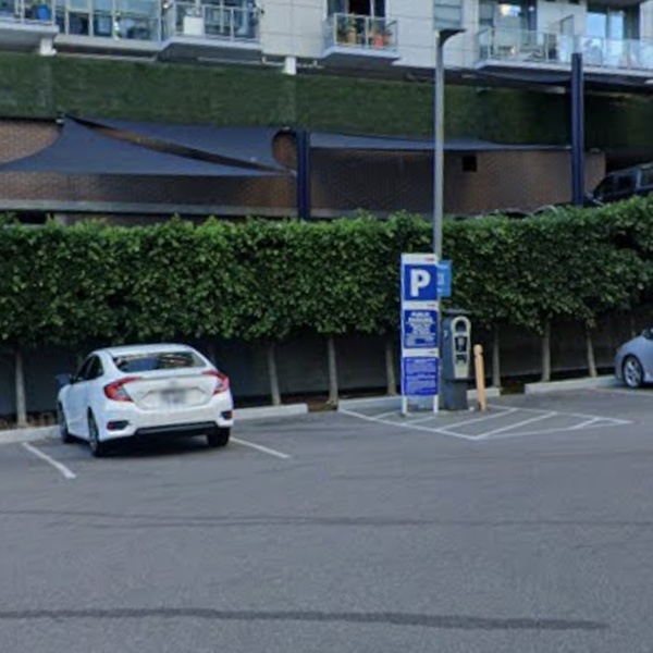 This surface lot is located on the left side of Ninth Ave, just after the intersection with B St. Look for a pay parking meter and a blue sign inside the lot reading "P" in white.