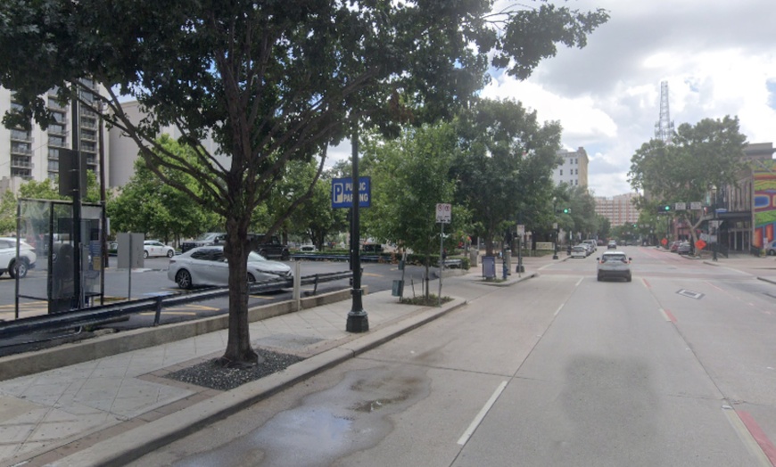This surface lot is located on the left side of Travis St, at the southwest corner of Travis St and Preston St. Look for a blue post sign that reads "Public Parking" in white. There are additional entrances located on Milam St, between Preston Ave and Prairie St; and on Preston St, between Milam St and Travis St.