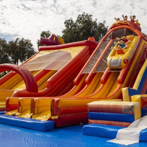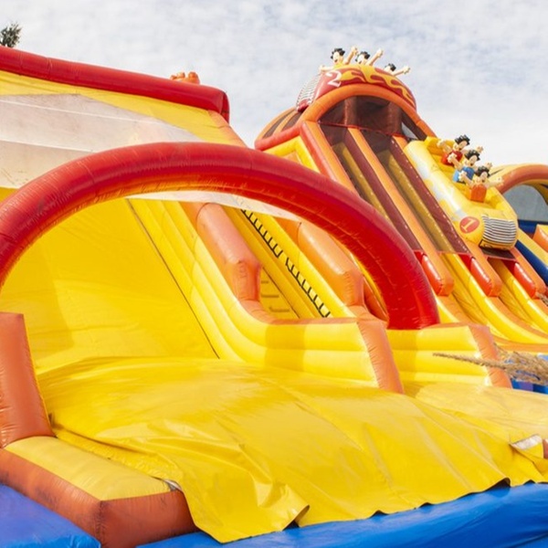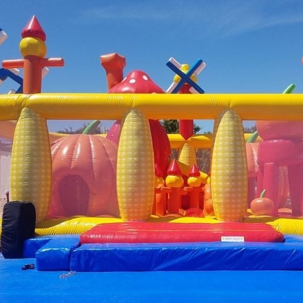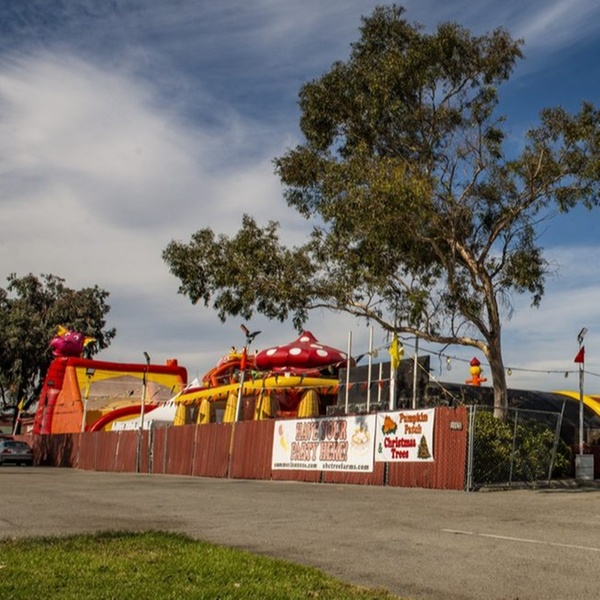 It is a third-generation, family-owned business that has been operating for over 40 years, specializing in seasonal attractions like this inflatable park, pumpkin patches, and Christmas tree lots