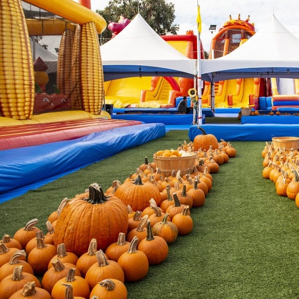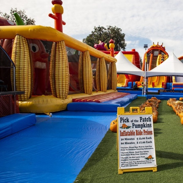 Children aged 2-12 can enjoy an exciting outdoor inflatable park with the purchase of a wristband, and there's also a vast pumpkin patch to explore.