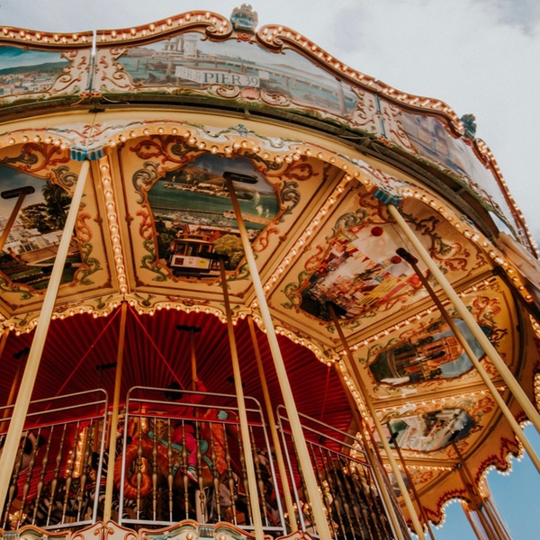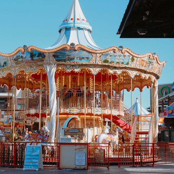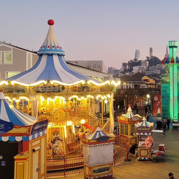 The San Francisco Carousel at Pier 39 is a two-story, hand-painted masterpiece featuring whimsical animals and vibrant scenes of the citys most famous landmarks. Nestled in the heart of Fishermans Wharf, it offers a charming, family-friendly ride with breathtaking views of the waterfrontperfect for guests of all ages.