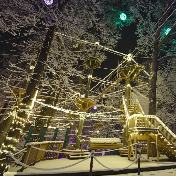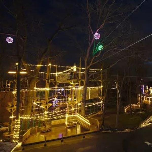 • Challenge yourself on 33 elevated high ropes obstacles, completely illuminated, for an added layer of festive fun and adventure.