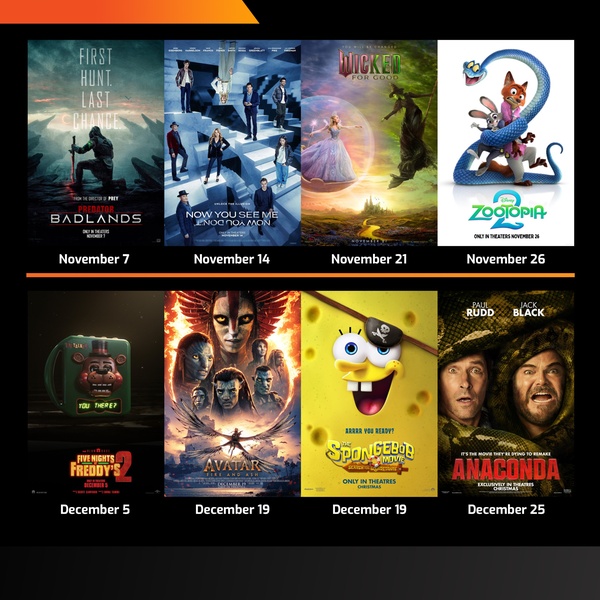 Immerse yourself in unforgettable storytelling with big screens, incredible surround sound, and plush seating