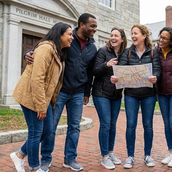 Discover iconic landmarks like Mayflower II, Pilgrim Hall, and Town Hall with engaging, in-person challenges.
