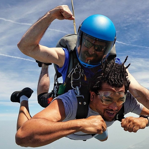 Your tandem skydive jump includes comprehensive ground training, professional guidance from USPA-certified instructors, all essential skydiving gear such as full-body jumpsuits, gloves, and hats, and the exhilarating jump itself safely harnessed to an instructor.