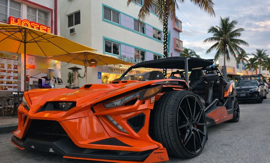 Cruise through vibrant Miami Beach in a custom 4-seater, providing an open-air thrill and unique perspective.