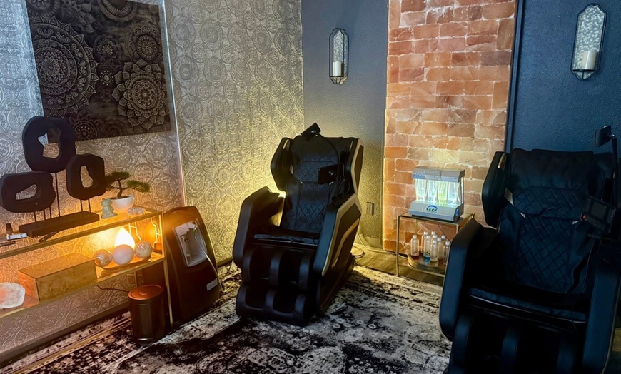 Enjoy a private zero gravity massage chair experience with aromatherapy options for enhanced relaxation!