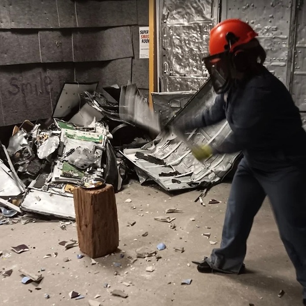 After an introduction and safety briefing, adventure-seekers smash glasses, plates, electronics, and other household items in a safe space