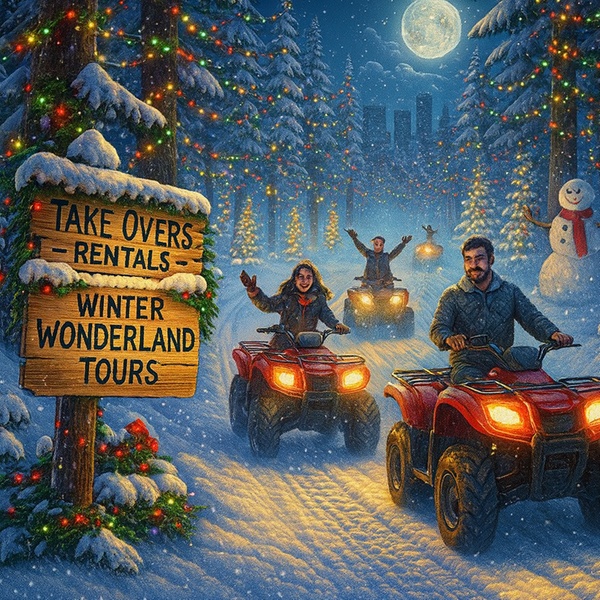 Get ready for a magical seasonal adventure with the Winter Wonderland ATV Holiday Lights Tour. Begin with a thrilling 45–50 minute ride through private, moonlit trails, where festive décor, glowing lights, and winter-inspired scenery transform the landscape into a dazzling holiday escape. As the ride continues, you’ll cruise through a beautifully illuminated Holiday Lights Trail, filled with twinkling displays, snow effects, and immersive Christmas-themed visuals that capture the spirit of the season. This unique blend of high-energy ATV riding and enchanting holiday atmosphere makes it a must-do winter experience.
